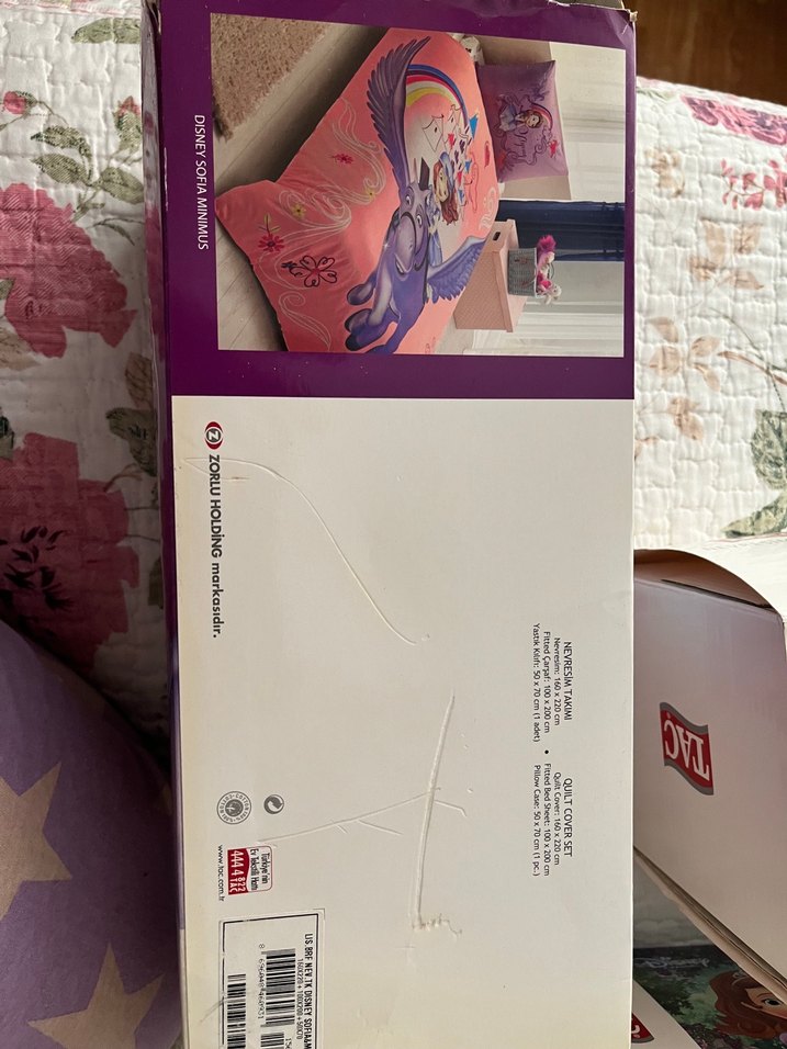 Renkli unicorn ve kelebek desenli çocuk yatak örtüsü, uyumlu yastık kılıfları ile birlikte gelir. Odada neşeli bir hava yaratır.