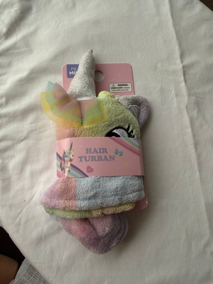 Yurt dışından alınmıştır. Unicorn (tek boynuzlu at) desenli çocuk saç havlusu. Peluş ve yumuşak dokuludur, saçı hızlı kurutur. Hafif ve kullanımı pratiktir. Duş sonrası çocuklar için idealdir. Sıfır etiketli üründür. Unisex kullanım uygundur.