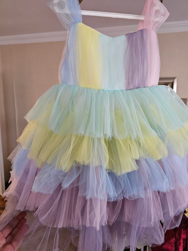 UNICORN RENKLI elbise ,yeni ve saĝlam, çok șik ...kizim 7 yaşa kadar giyiĝimiş kalip geniş , yeni gibi ve Eteğin