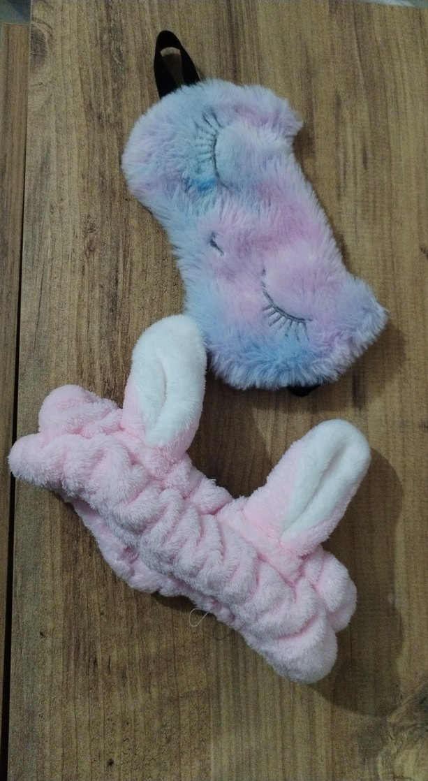 Pastel pembe tie-dye desenli uyku maskesi ve kulaklı yumuşak peluş saç bandı seti, rahat uyku için uygundur. Heves ep aldım kenarda dutçrsu yenidir. Tavşanlı makyaj yaparken saç inde kullanılıyor aksesuarlar olarakta