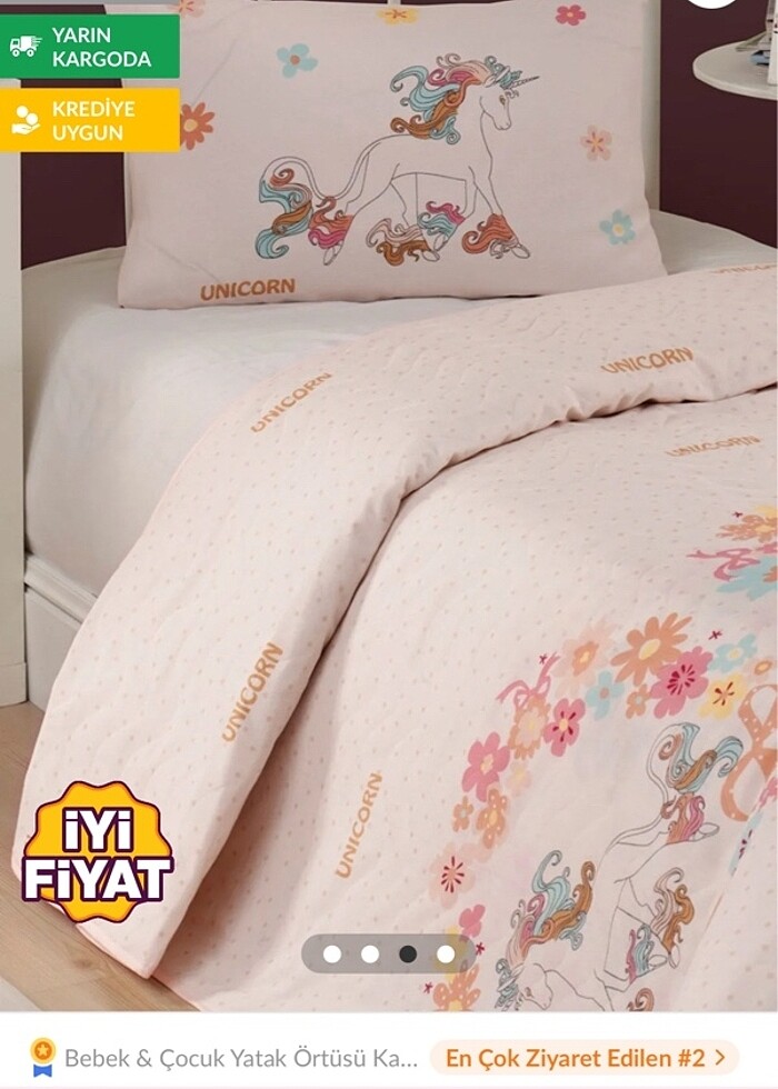 Unicorn tek kişilik yatak örtüsü 1 adet yastık kılıfı