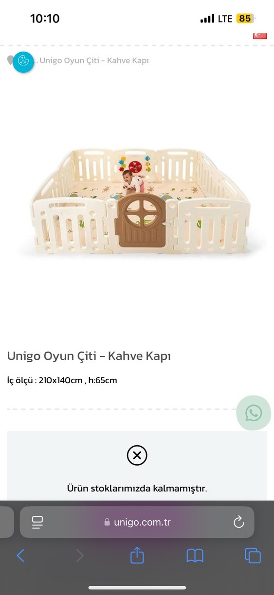 Unigo beyaz çerçeveli ve kahverengi kapılı oyun çiti, 210x140 cm ölçülerinde ve 65 cm yüksekliğinde, çocuklar için güvenli oyun alanı sağlar. Bir iki tane kaydırması eksik sanırım Ben pek kıllanmamıştım ciddi alıcılara bilgi verebilirim