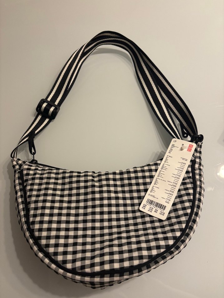 Uniqlo Beyaz Siyah Kareli Omuz Çantası