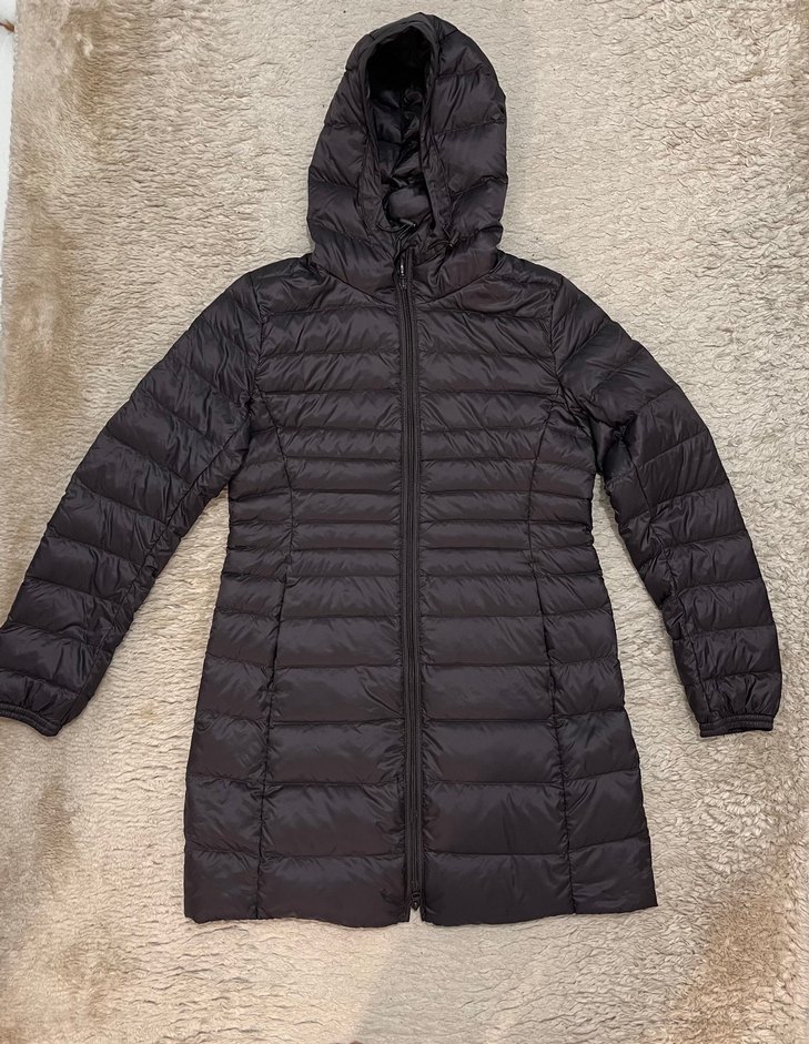 Uniqlo Japon kaz tüyü çok güzel mürdüm uzun parka