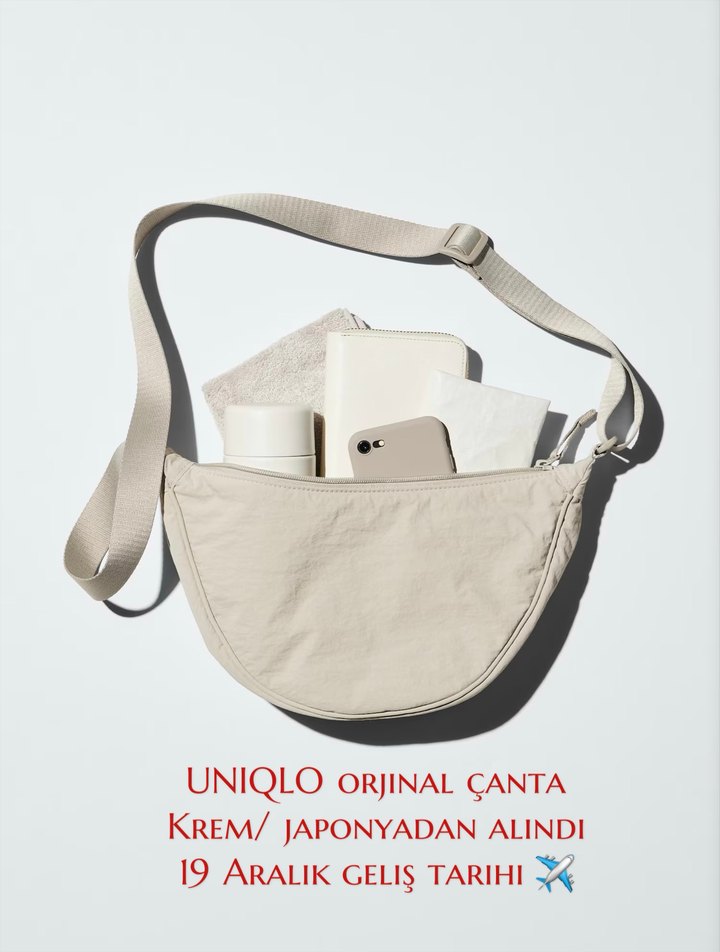 Uniqlo'nun krem rengi kadın çantası, sentetik kumaştan üretilmiş sade ve normcore tasarıma sahiptir. Ayarlanabilir askısı ile gündelik kullanıma uygundur. ❣️ piyasadaki muadil ürünler ile kıyaslamayınız. Fiyat sondur. Etiketlidir. 19 aralık çarşamba günü dönüyorum o günden sonra kargolayabilirim. 2 adet krem rengi vardır. Adet fiyatıdır