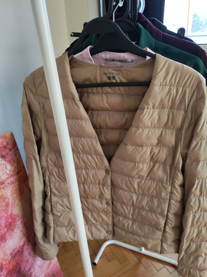 Uniqlo Puffertech Bej yuvarlak ve v yakası Kadın Kışlık Mont