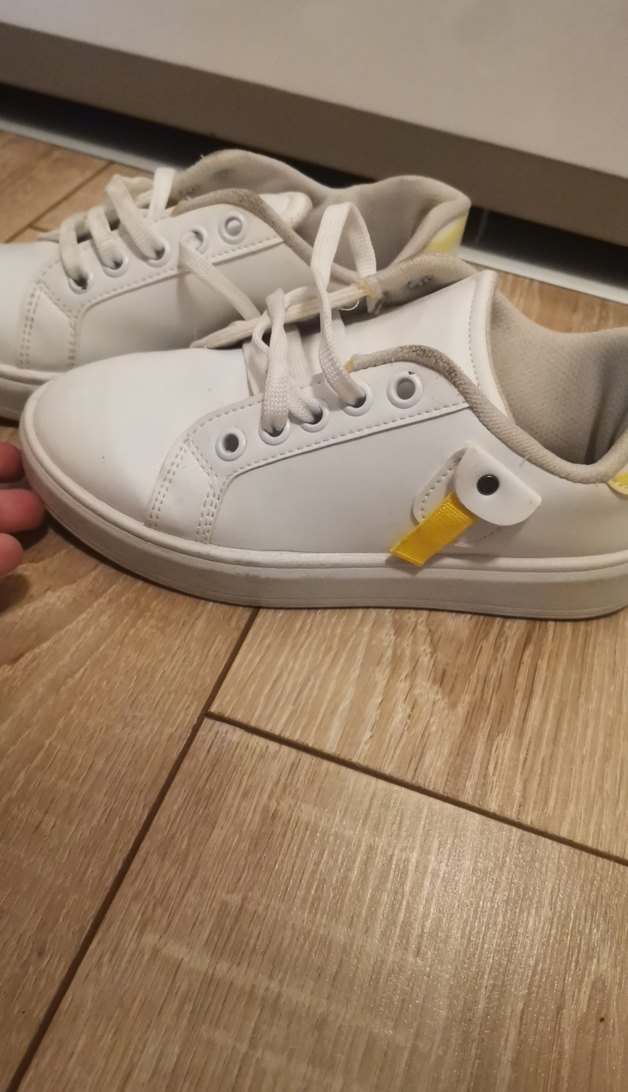 Beyaz bağcıklı spor ayakkabı . Kauçuk malzemeden, sokak stili ve günlük kullanım için uygun, desensiz ve açık renklidir.