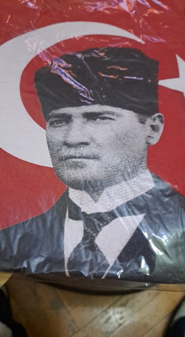 Siyah renkli, baskılı portre deseni olan kız erkek tişörtü. Milli duyguları yansıtan koyu ve canlı renkler içerir. kaliteli ürün, 8 yaş
