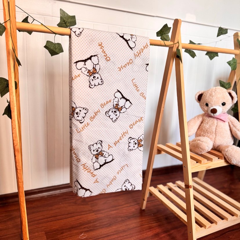 Pazen kumaştır 80X90cm’dir Pamuklu yumuşak kumaştan yapılmış, sevimli ayıcık desenleriyle süslenmiş pastel kahverengi çocuk battaniyesi.