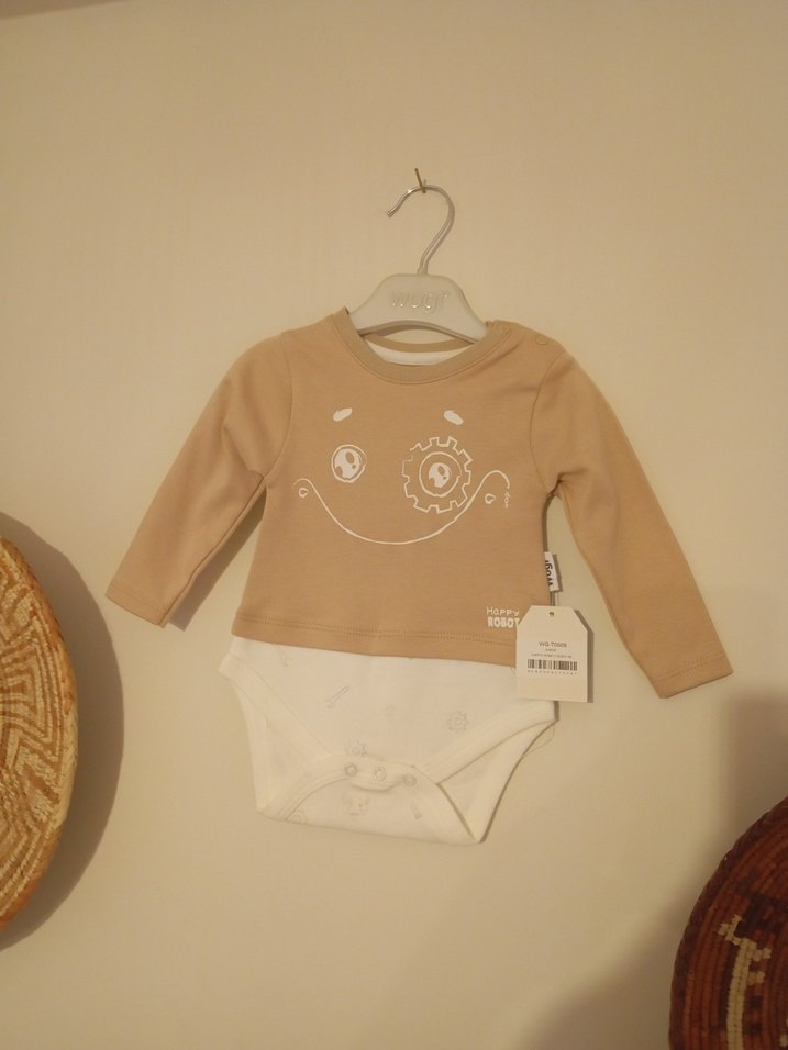 Bej renkli, uzun kollu, bisiklet yakalı ve baskılı tasarımlı bebek body, pastel tonlarda zahmetsiz şıklık sunar. sıfır ürün. 0-3 ay ve 3-6 ay mevcuttur. lütfen yeni ilan açtırınız.
