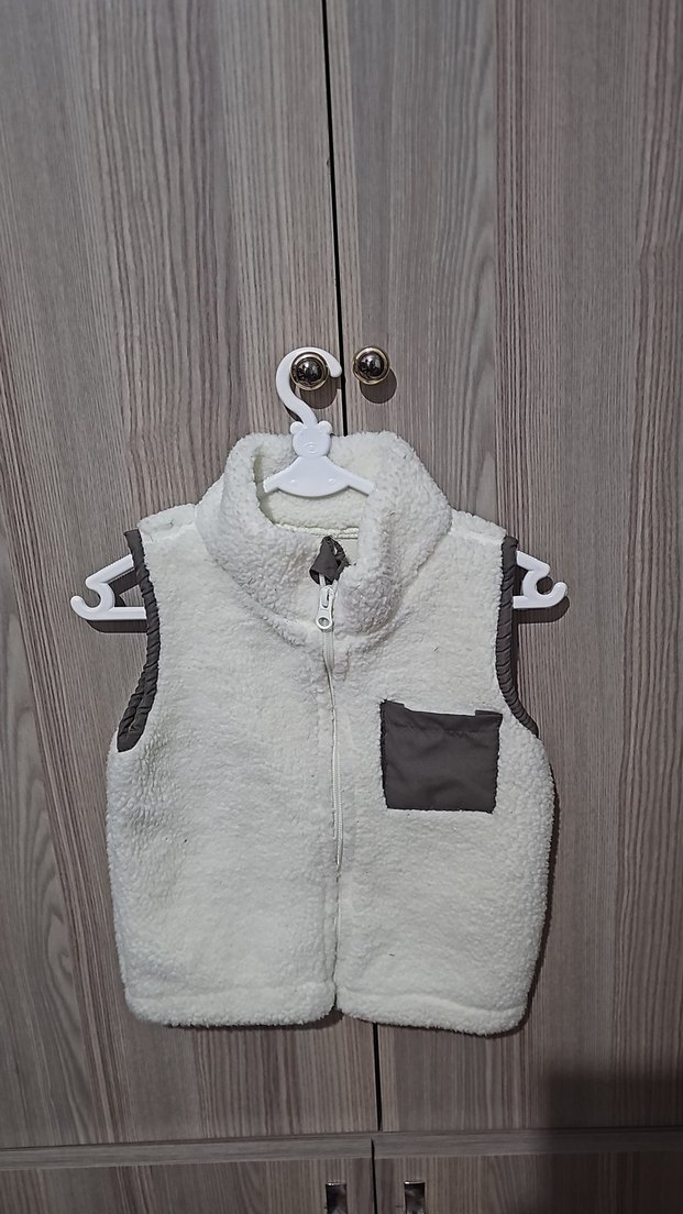 Hem kız hem erkek çocuk için uygundur.Bebeği terletmemesi için sadece dışı peluş içi peluş değildir.Yüksek yakalı, kolsuz çocuk yeleği, yumuşak ve sıcak kumaştan üretilmiştir. Gri cep detayı ve fermuar kapamalıdır, günlük sokak stiline uygundur. ❄️