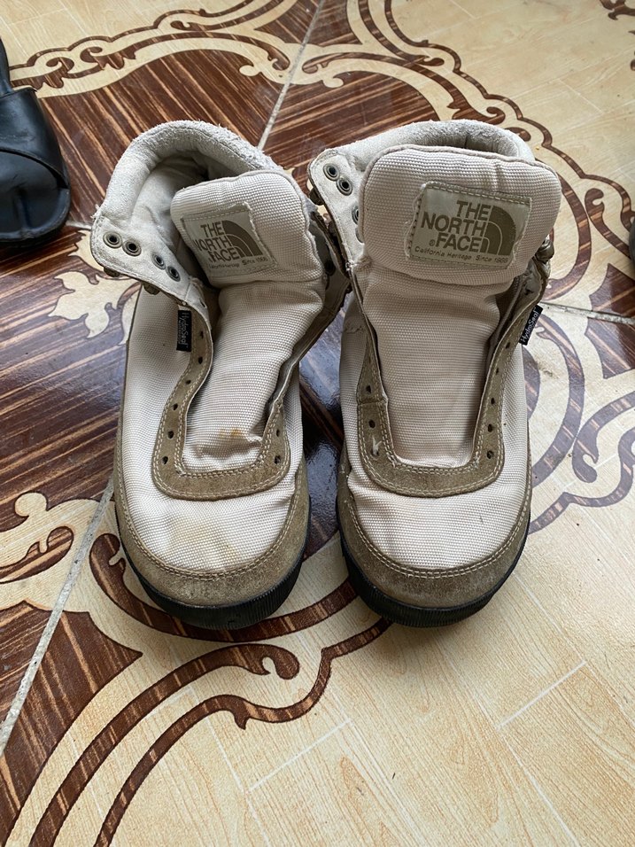 beyaz ve gri The North Face spor botlar, cırt cırtlı kapanış ve desen içermeyen sade tasarım. Bağcıklarını attım farklı bir ayakkabı bağcığıda tercih edilebilir bende bir çift beyaz bağcık var isteyene ekleyebilirim
