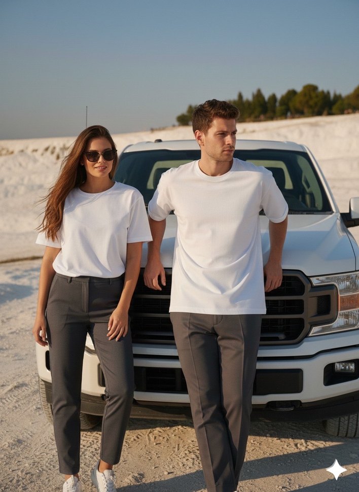 Pamuklu beyaz unisex tişört, kısa kollu ve yuvarlak yaka. Oversize kesimi ve sade tasarımıyla şık stiline uyum sağlar.