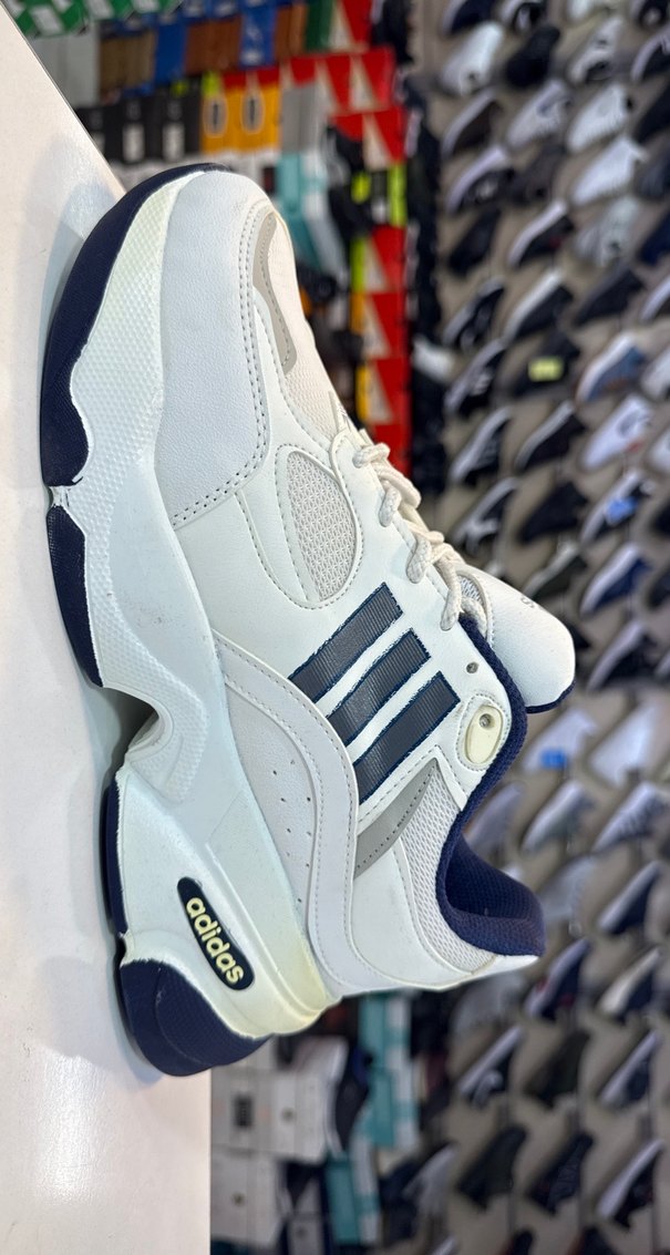 Beyaz spor ayakkabısı, velcro bantlı ve kauçuk tabanlıdır. Athleisure tarzı ve günlük kullanım için uygundur, renkli baskı detayları bulunur.