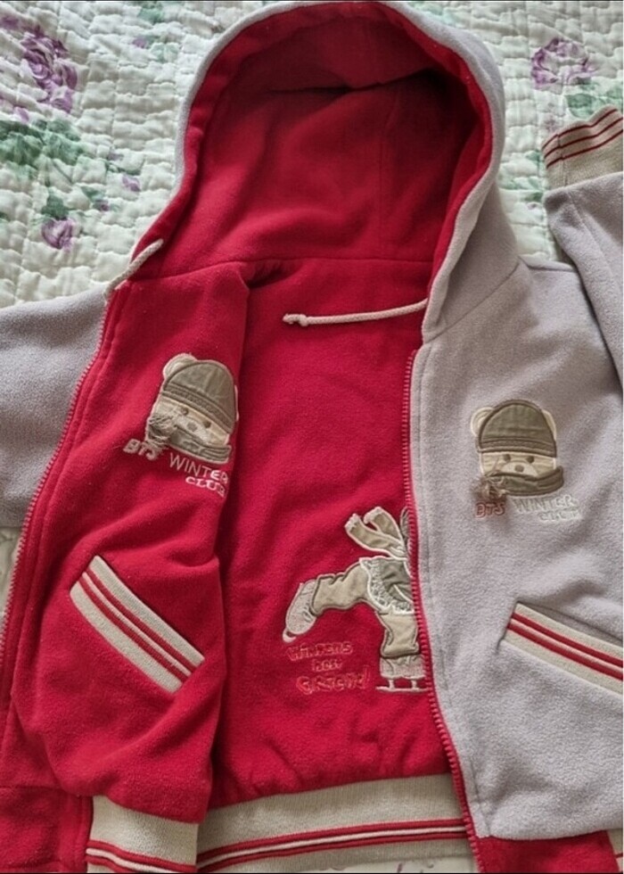 Unisex Çift taraflı bej ve kırmızı Bts mont (4_6 yaş)