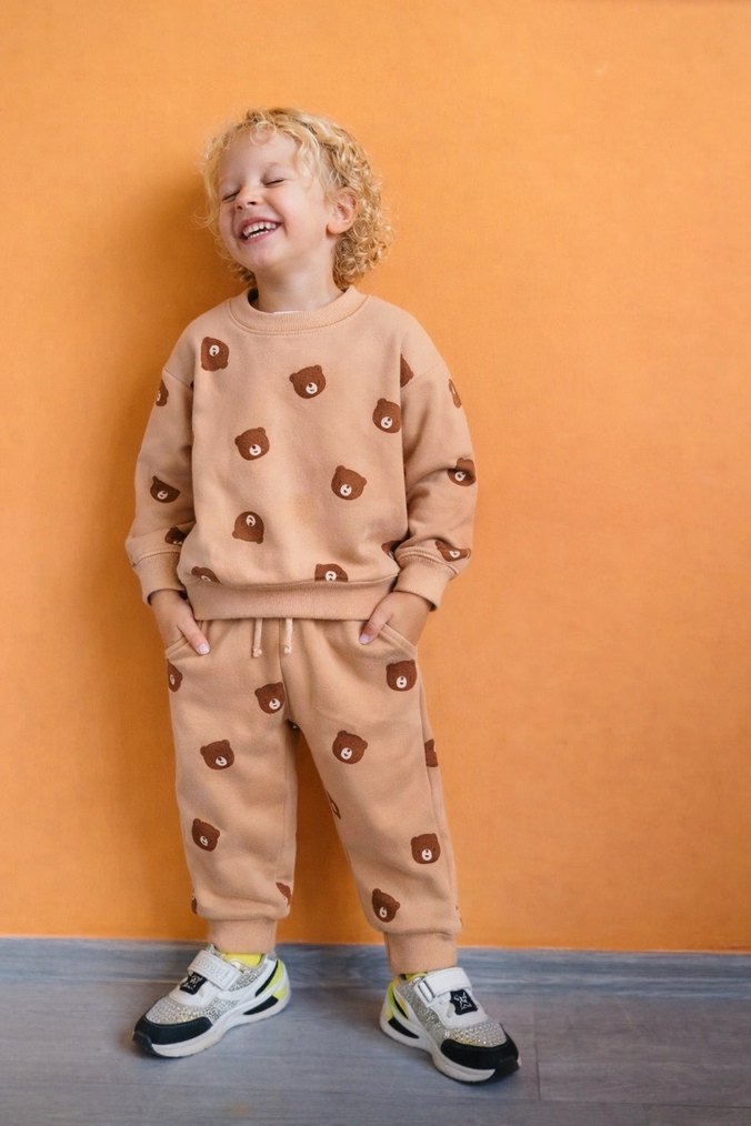 Unisex Çocuk Kahverengi Desenli Eşofman Takımı 2.3 - 5.6 yaş