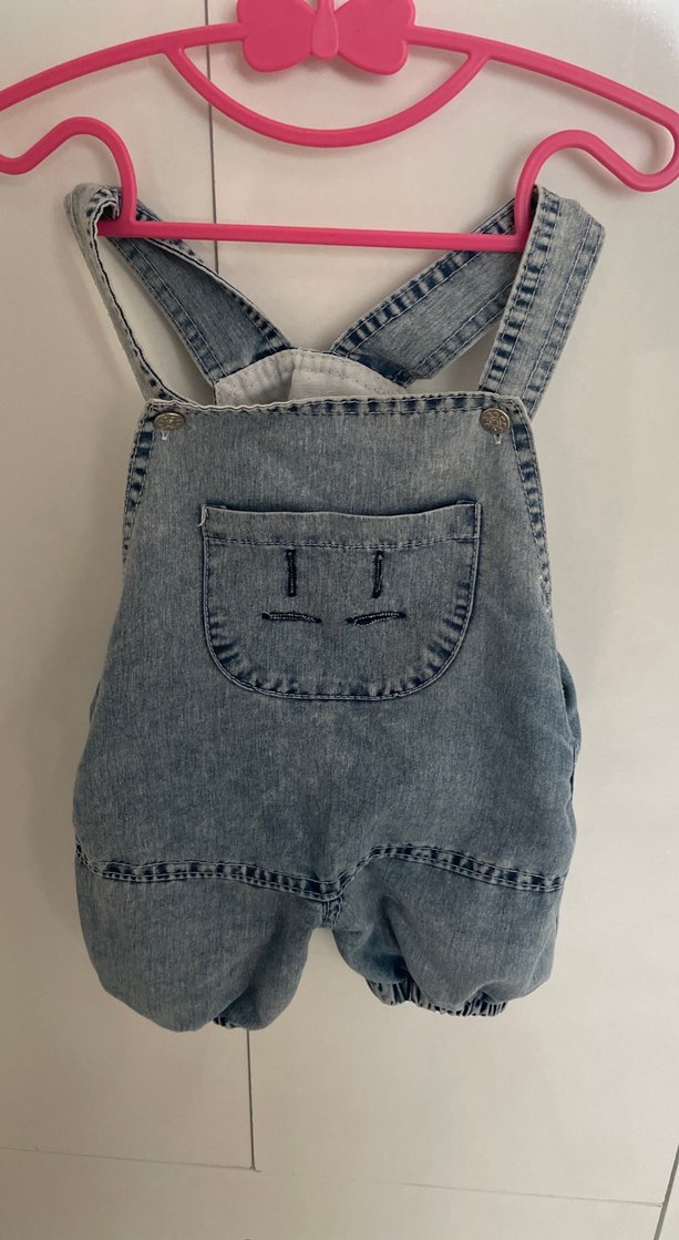 Gri-mavi tonlarda, askılı, tokalı ve ön cepli rahat kesim erkek çocuk kot tulumu. Sadece önündeki tavşanı yok onu da gönderirken alıp koyacağım yenidir