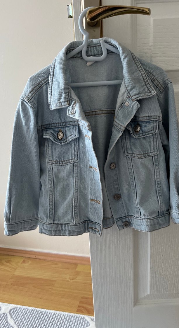 Fitted kesim, düğmeli önü ve kesik yaka detaylı unisex çocuk mavi denim ceket. Sokak stiline uygun sade ve şık tasarım. 3/4 yaş