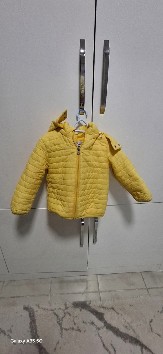 Fermuarlı önü ve kesimli yakasıyla sarı çocuk montu, yumuşak ve sıcak dokusuyla sokak stiline uygundur. Hem kız hem de erkek için uygundur