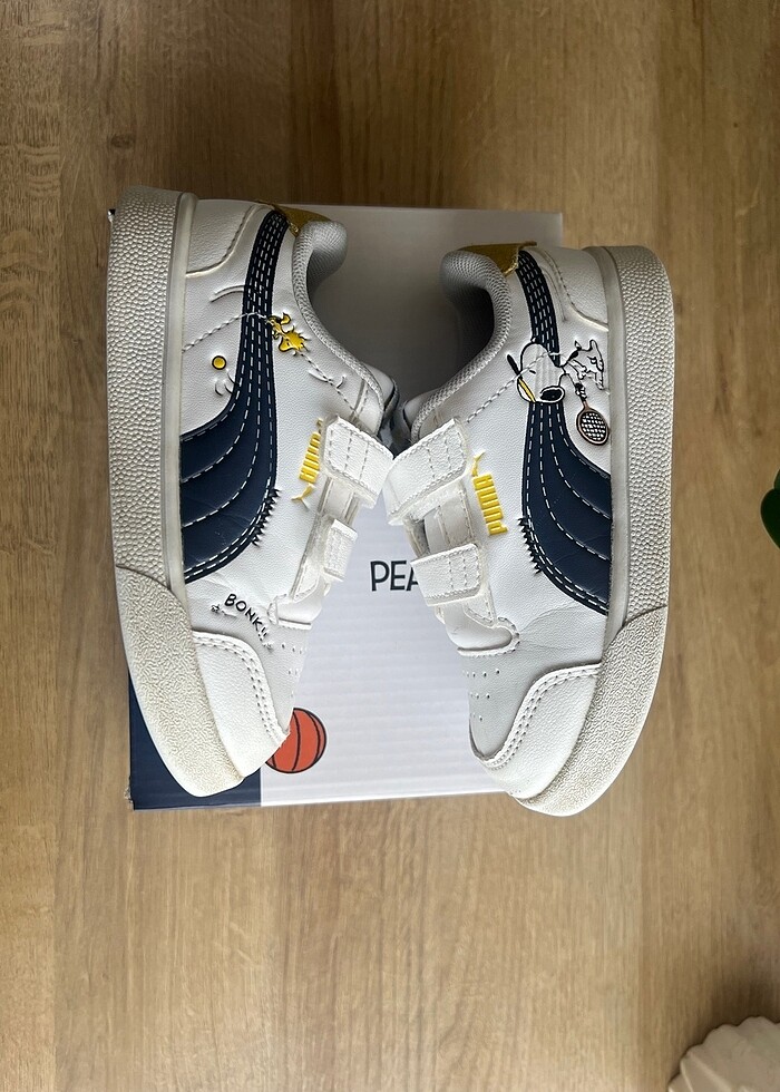 Çok tatlı bir seridir. Kız erkek çocuk giyebilir. Ön sol uç kısmında ufak bir aşınmadan başka hiçbir sorunu olmayan tertemiz bir ayakkabıdır. Severek giydik 24 numara 15 cmdir