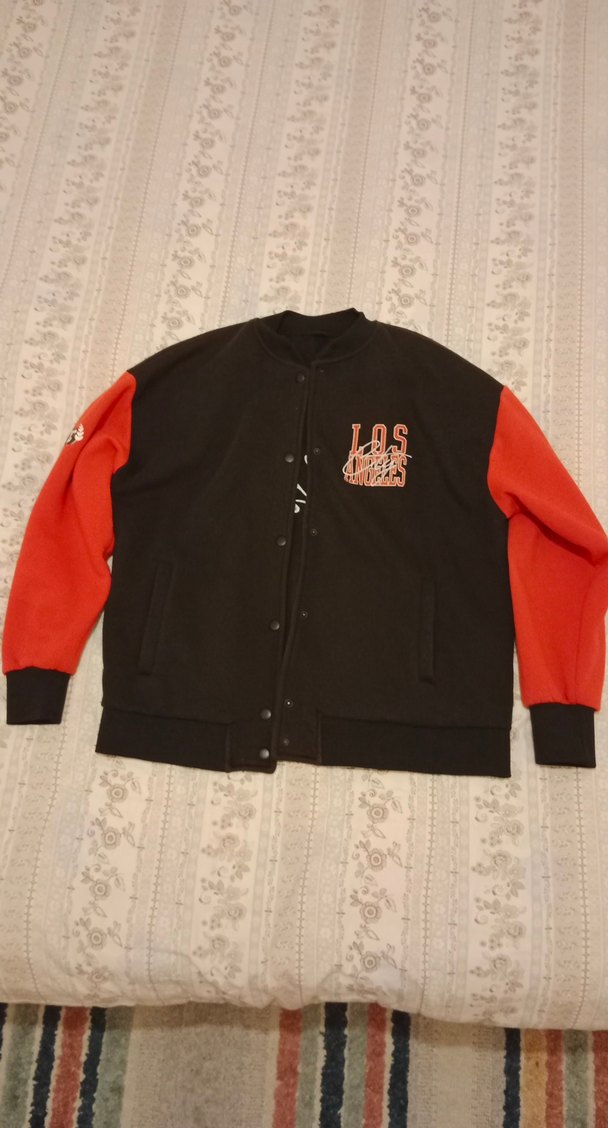 Uzun kollu, düğmeli ve bisiklet yaka college mont. Rahat kesimli, yumuşak ve sıcak kumaştan. Siyah gövde ve canlı kırmızı kollar, baskılı detaylı spor tarzı. renginde çok hafif solma var, O yüzden fiyatını uygun tuttum. çok rahat, içi polar. Erkek ve kız için uygun. kız bedeni S olarak düşünebilirsiniz. erkek için 12, 13 yaşa uygun.