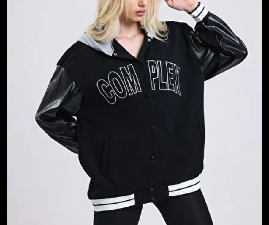 Unisex Complex Naskışlı Kol Detay Kapüşonlu Kolej Ceket -siyah