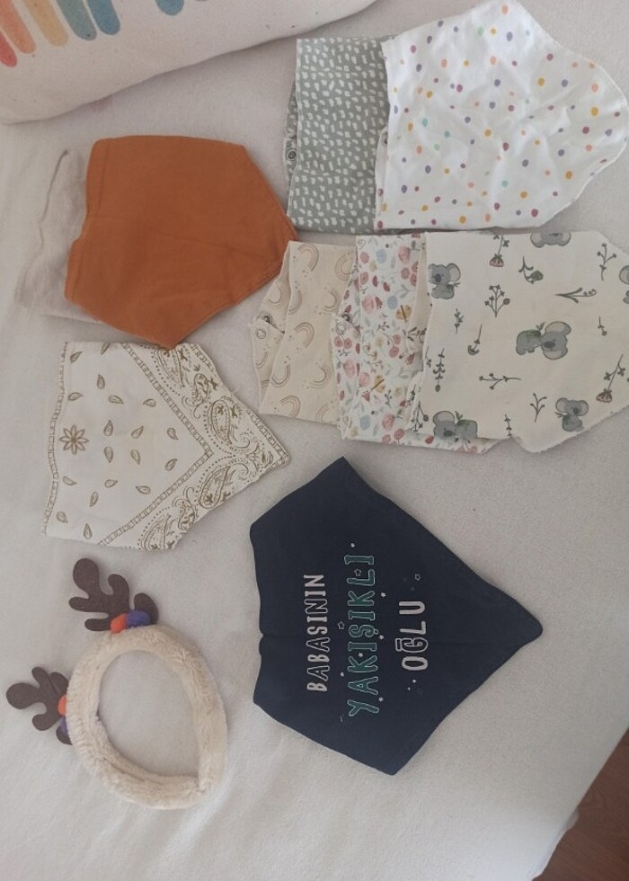 Unisex fular veya önlük olarak kulllanılanilir . Ürünler pamukludur.temizdir. tane fiyatıdır