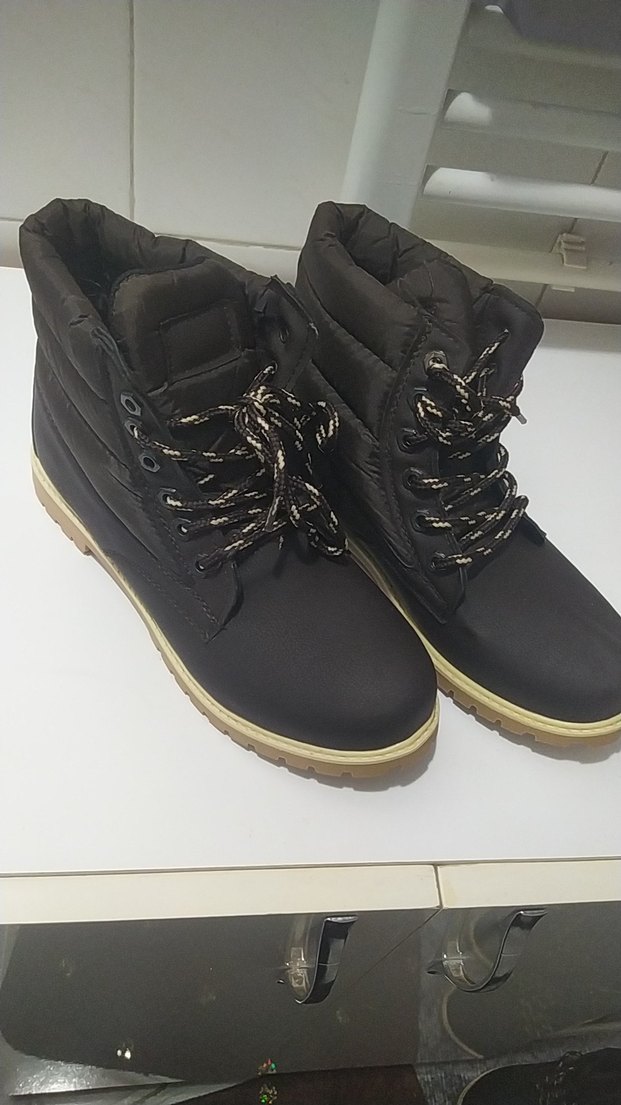 Koyu kahverengi, bağcıklı, kauçuk malzemeden üretilmiş, günlük kullanıma uygun. depoda kaldığı için hafif rutubet kokusu var havalandirinca kesinlikle gider, sıfır üründür.