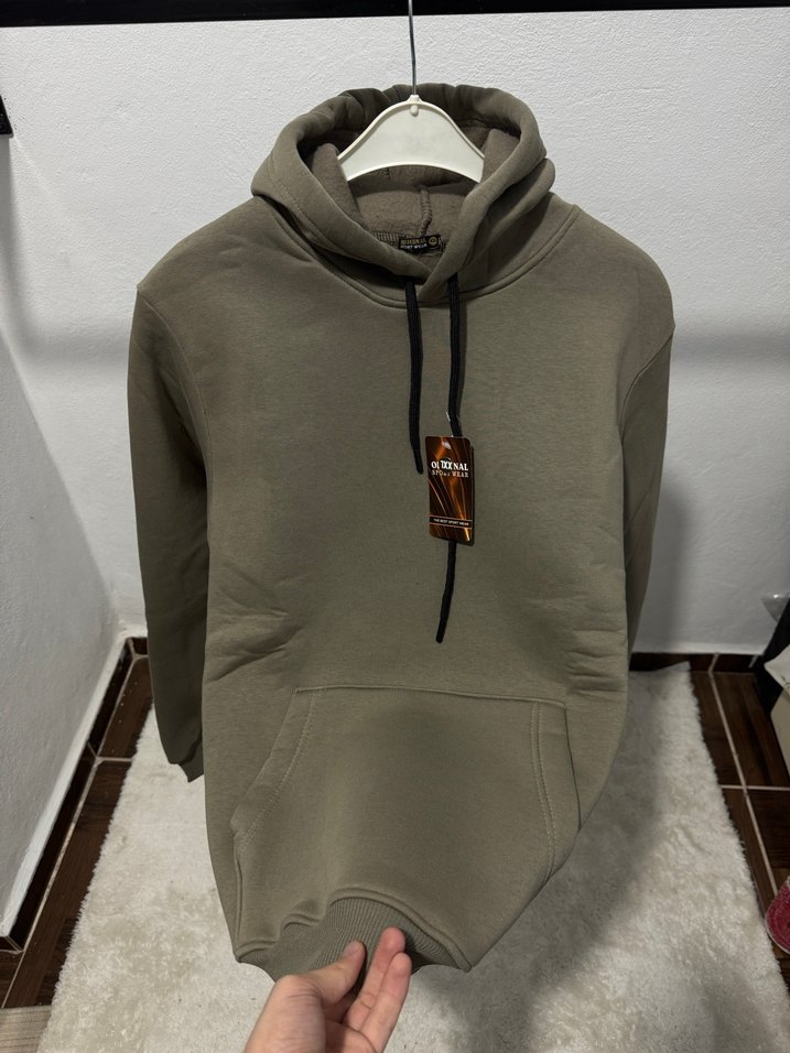 Kadın kahverengi kapüşonlu sweatshirt, bol kesim ve uzun kollu. Yumuşak ve sıcak kumaştan, kısa boyu sayesinde rahat ve şık bir görünüm sunar.
