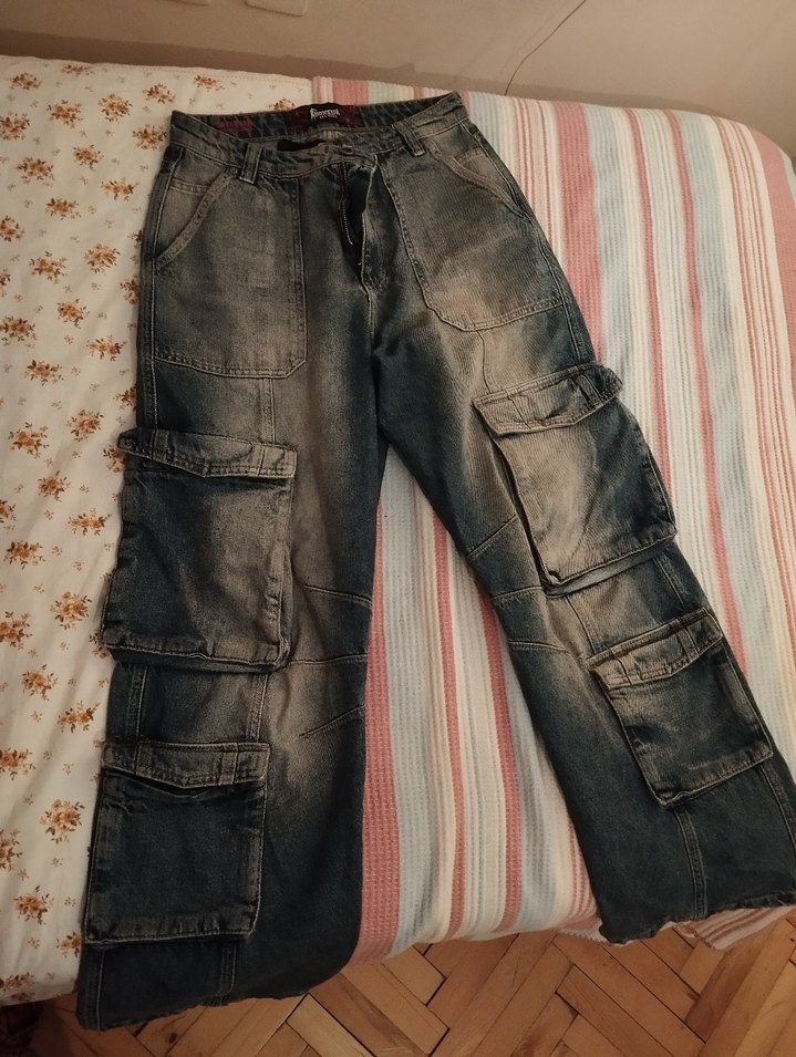 Unisex kargo pantolon. bir iki ufak lekesi var fotoğrafta gösterdim. 170 boyundayım boyu bana tam oluyor. muhtemelen 165-175 arası boylara uyacağını düşünüyorum. Orijinal ürün.