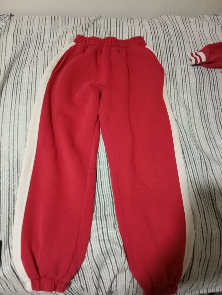 kırmızı beyaz eşofman altı. kalın ve kışlık. lastik paça ve bol kesim