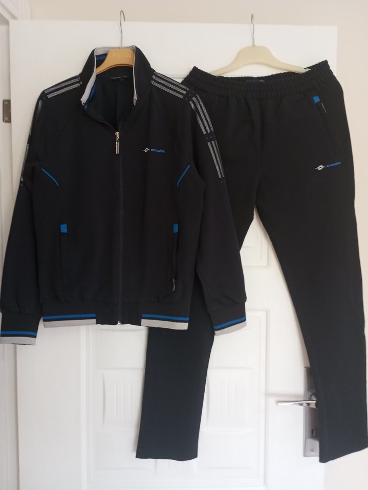 Unisex lacivert fermuarlı, yüksek yakalı ve uzun kollu üst ile normal kesim eşofman altından oluşan yumuşak ve sıcak kumaş takımı. Spor ve günlük rahat stil için uygundur.