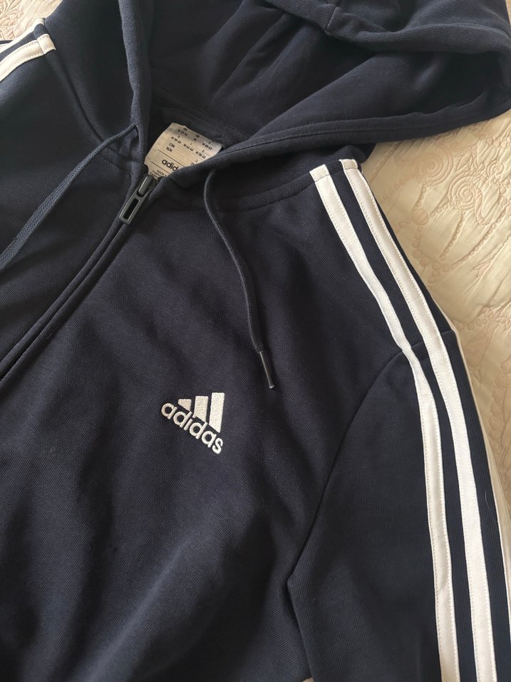 Unisex Lacivert Orjinal Adidas Fermuarlı Sweatshirt