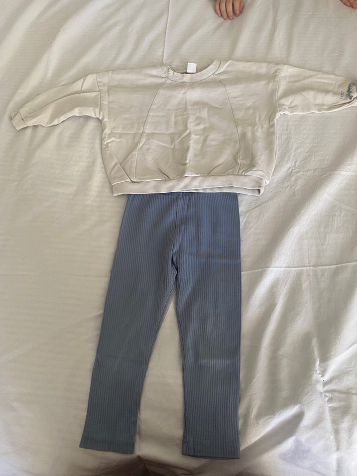 Unisex için beyaz uzun kollu, bisiklet yaka sweatshirt ve mor tayt Rahat ve günlük kullanım için uygun.