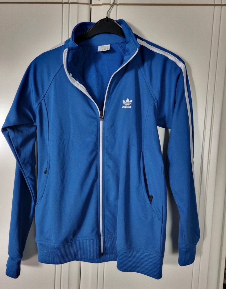 Ünisex için fermuarlı, uzun kollu, yüksek yakalı ve dar kesim mavi spor ceket. Yumuşak ve sıcak kumaştan üretilmiştir.