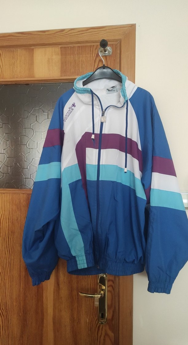 Unisex bol kesim, kapüşonlu ve fermuarlı mavi spor mont. Uzun kollu ve renk bloklu tasarıma sahip, rahat kullanım sağlar. Vintage yağmurluk