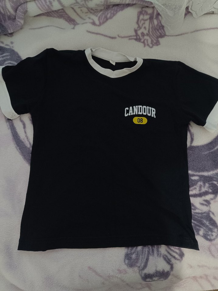 laciver pamuklu unisex tişört, kısa kollu ve beyaz yakalıdır. Bol kesimi ve 'CANDOUR' baskısı ile rahat ve şık bir sokak stili sunar. S-M beden, bir kaç kez tek giyildi temiz ürün