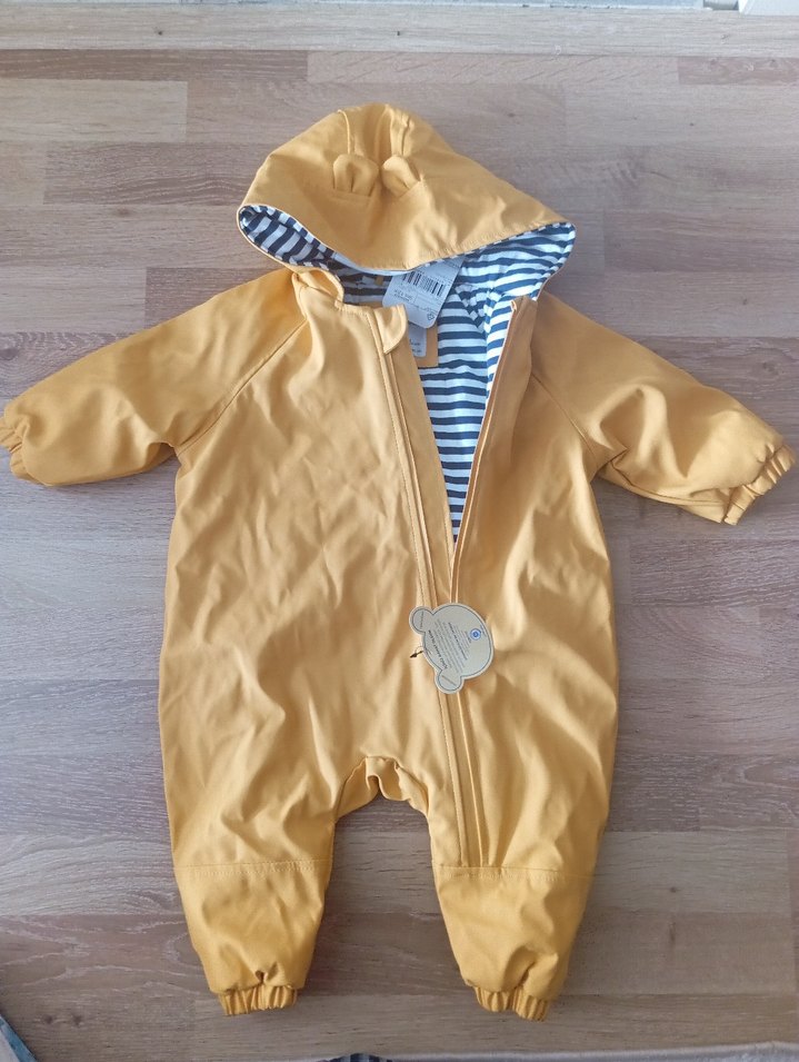 Kapüşonlu ve fermuarlı sarı bebek tulumu, yumuşak ve sıcak kumaştan. İç kısmı çizgili ve fermuarında ayıcık detayı bulunur. yeni harika bir model rüzgar geçirmez model 9-12m 74-80 cm