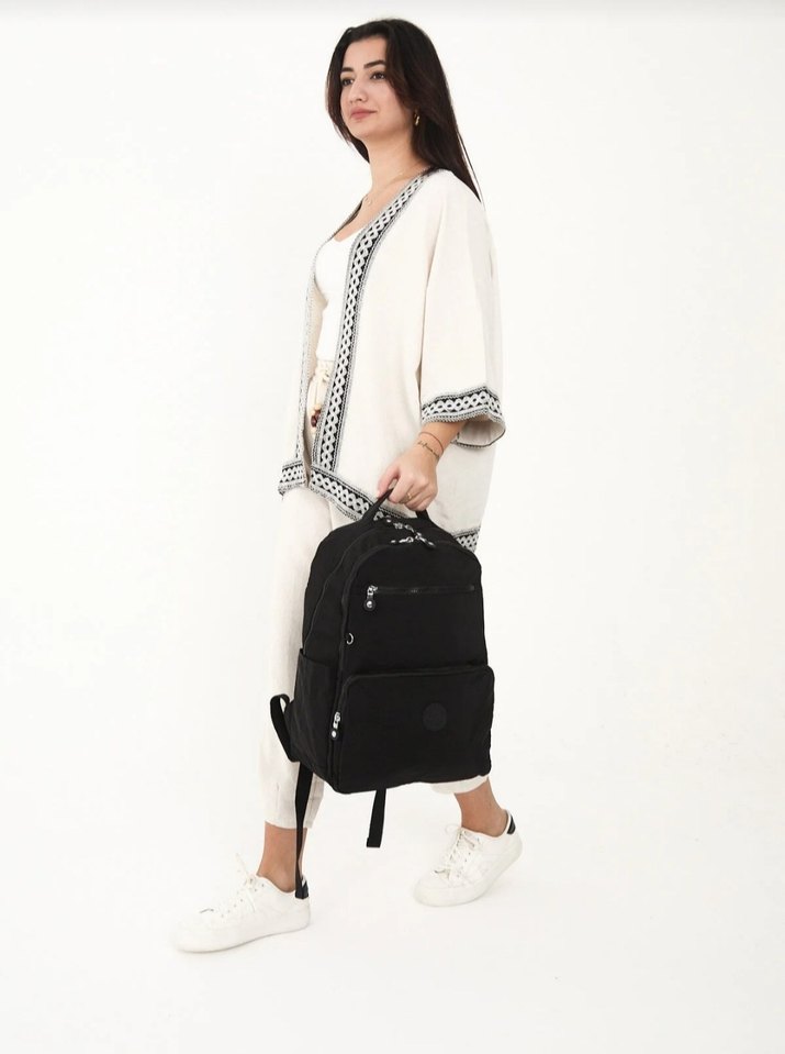 Sentetik kumaştan, bağlamalı tasarıma sahip beyaz bağlamalı kadın sırt çantası, trendy casual sokak stili için uygundur.