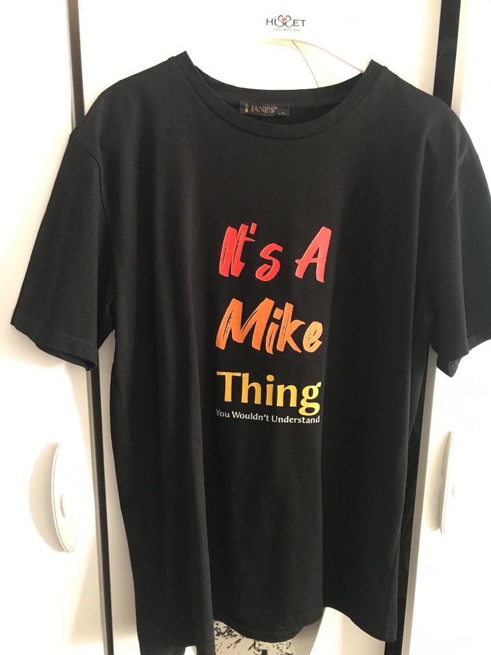 Siyah renkli, kısa kollu ve yuvarlak yakalı bol kesimi ve "It's A Mike Thing" baskısı ile rahat ve günlük kullanıma uygundur. L xl bedendir unısextir