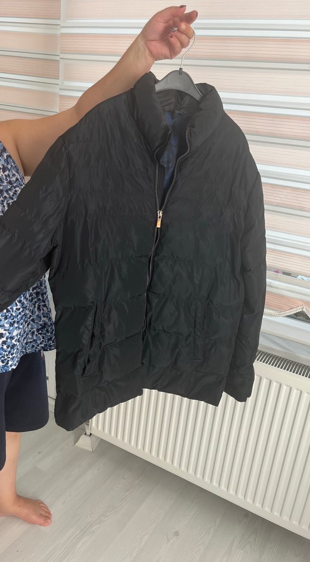 Kadınlar için yüksek yakalı, fermuarlı ve uzun kollu siyah midi mont. Sentetik kumaştan, sokak stili ve dış mekan kullanımı için uygun.