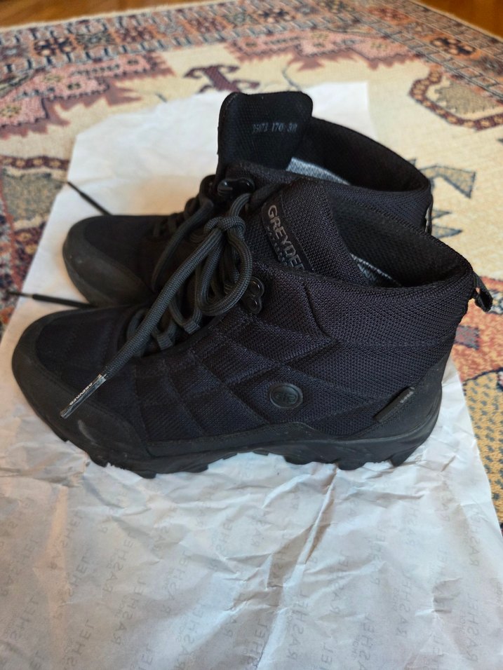 unisex siyah spor tarz botlar, cırt cırtlı ve bağcıklı tasarımla rahat ve güvenli kullanım sunar.