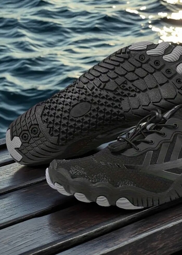 Uniseks Hızlı Kuruyan Kaymaz Su Ayakkabıları - Spor Salonu, Yürüyüş, Plaj ve Kamp İçin Hafif Nefes Alabilir Fileli Çok Amaçlı Kullanım - Çizgili Tasarımlı Dayanıklı Kauçuk Tabanlı Yüksek Kaliteli Ayakkabılar, Tatil Stili Esnek Ayak Giyim Black renk Yd ithal ürün 43 numara lastikli bogazlı uyumlu