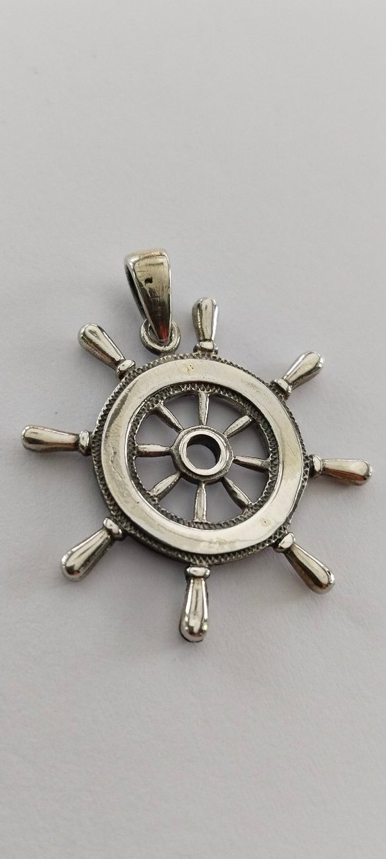 Vintage bohem tarzda, gemi dümeni şeklinde, tokalı ve işlemeli görünümlü gri kolye ucu. Günlük kullanıma uygun. ⚓ ➡️925 AYAR GÜMÜŞ ➡️ ÇAP:3CMX3.5CM➡️ AĞIRLIK:6.36➡️SIFIR ÜRÜN ➡️ GARANTİ SERTİFİKASI