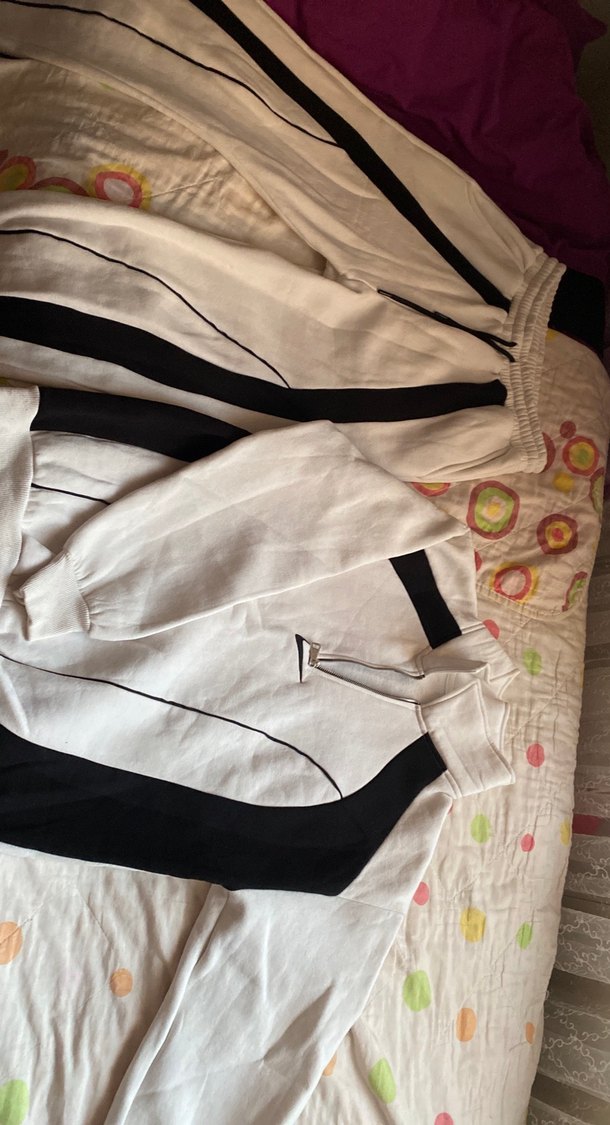 Unısexs Fermuarlı Beyaz Siyah Eşofman Takımı
