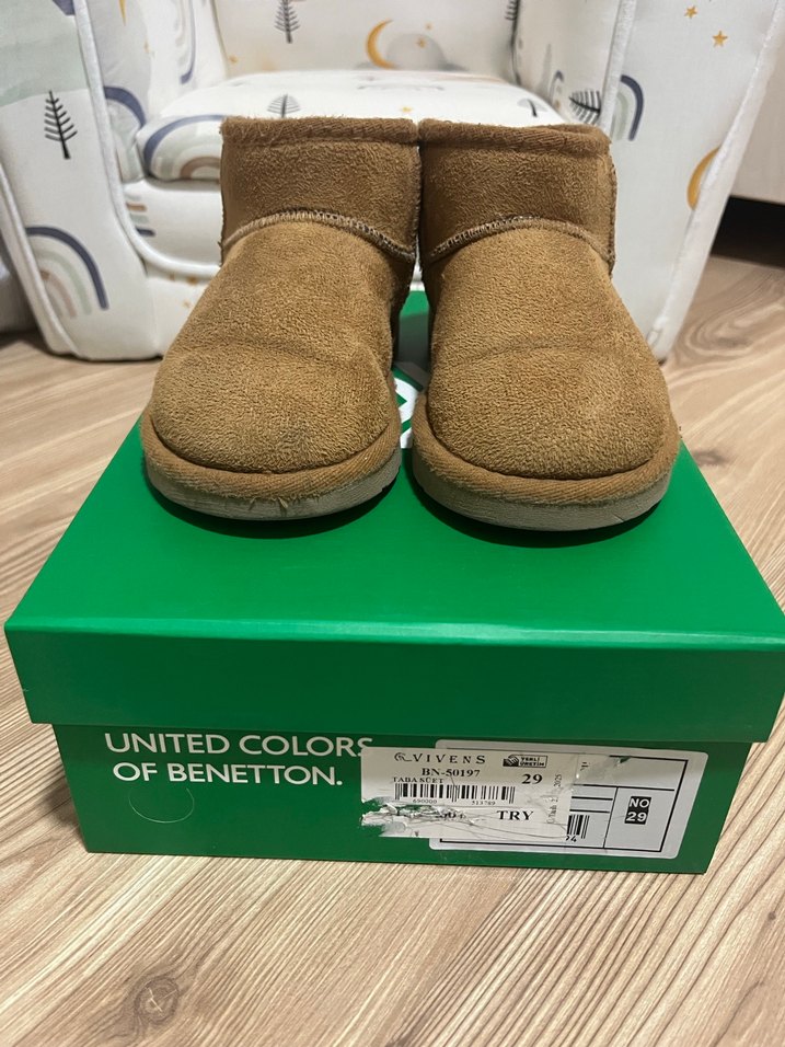 United Colors of Benetton markalı, açık kahverengi süet malzemeden yapılmış, çocuk botu. Soğuk ve kuru havalarda kullanılabilir, 29 numara.