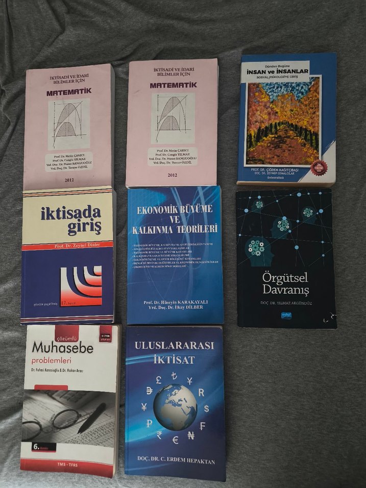 İktisada giriş, uluslararası iktisat, muhasebe problemleri, örgütsel davranış, matematik ve kalkınma teorileri konularını içeren üniversite kitapları. tane fiyatıdır