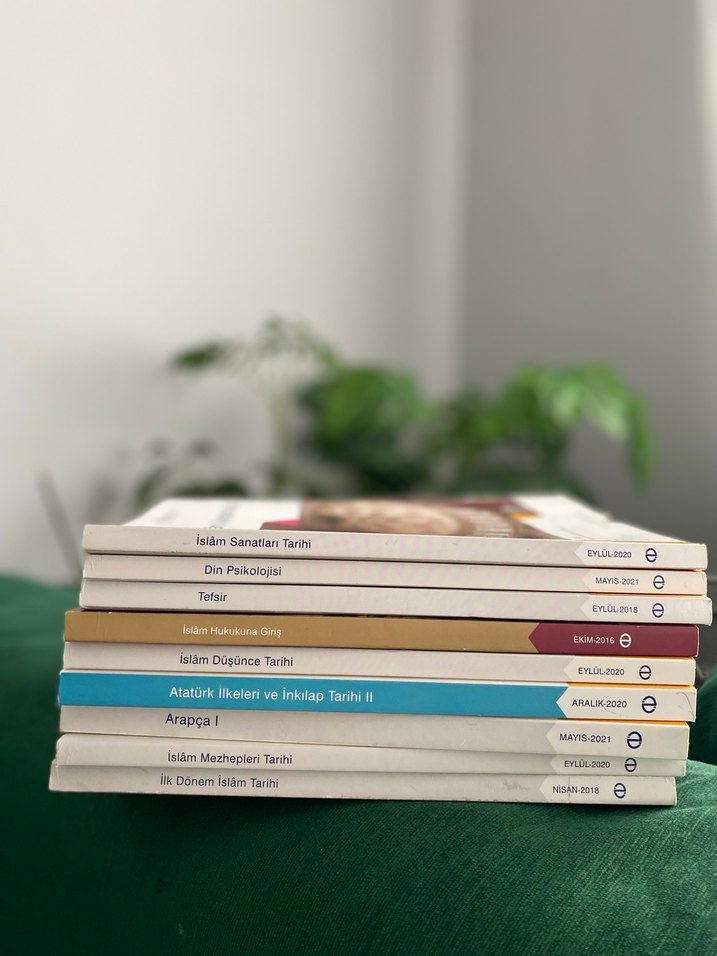 Anadolu üniversitesi aöf İslam sanatı, din psikolojisi, tefsir, İslam hukuku, Atatürk ilkeleri, Arapça ve İslam tarihi konularını içeren üniversite kitapları seti. Adet fiyatı çoklu alımda yardımcı olurum