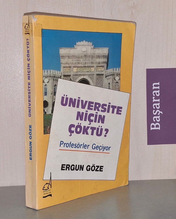 Ergun Göze'nin "Üniversite Niçin Çöktü?" kitabı, üniversitelerin yaşadığı sorunları ve profesörlerin görüşlerini içeriyor. 327 sayfa, ilk sayfada kütüphane notu var, son sayfa kopmuş.temiz.