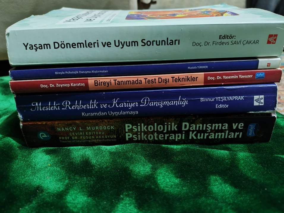 Psikolojik danışmanlık, psikoterapi kuralları, rehberlik ve kariyer danışmanlığı ile bireyi tanımada test dışı teknikleri içeren üniversite kitapları seti.